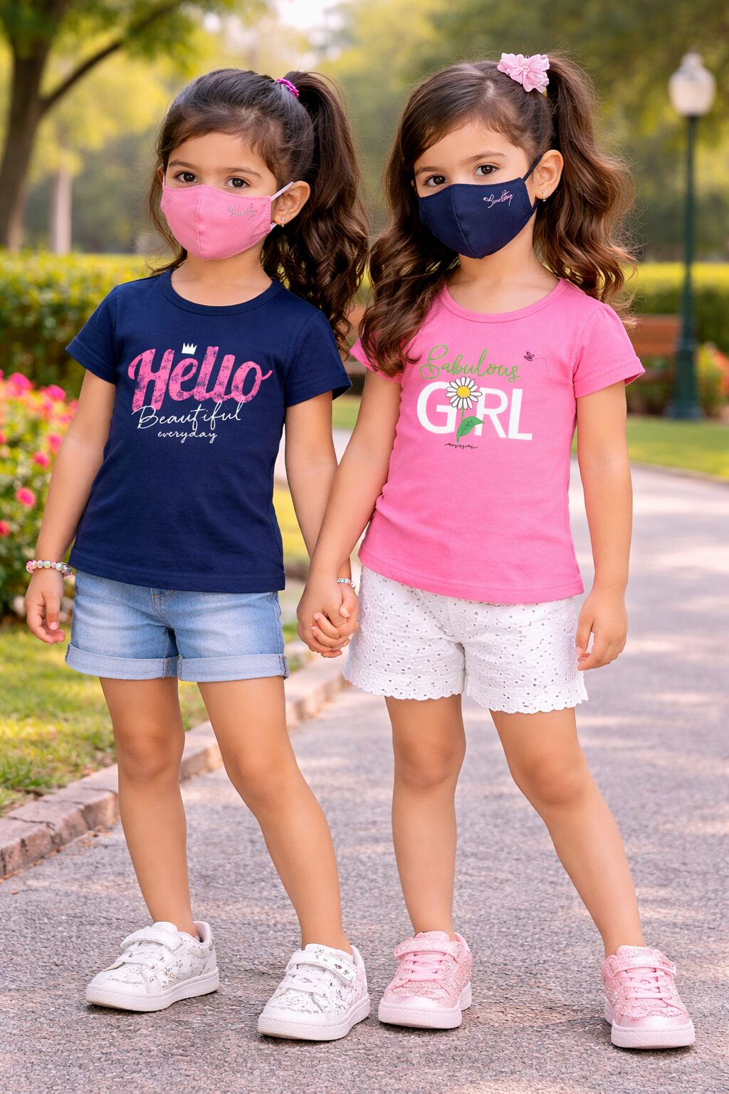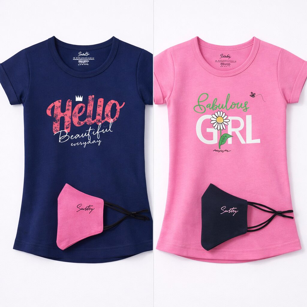 Printed Cotton T-Shirts with Matching Masks (Pack of 2)
