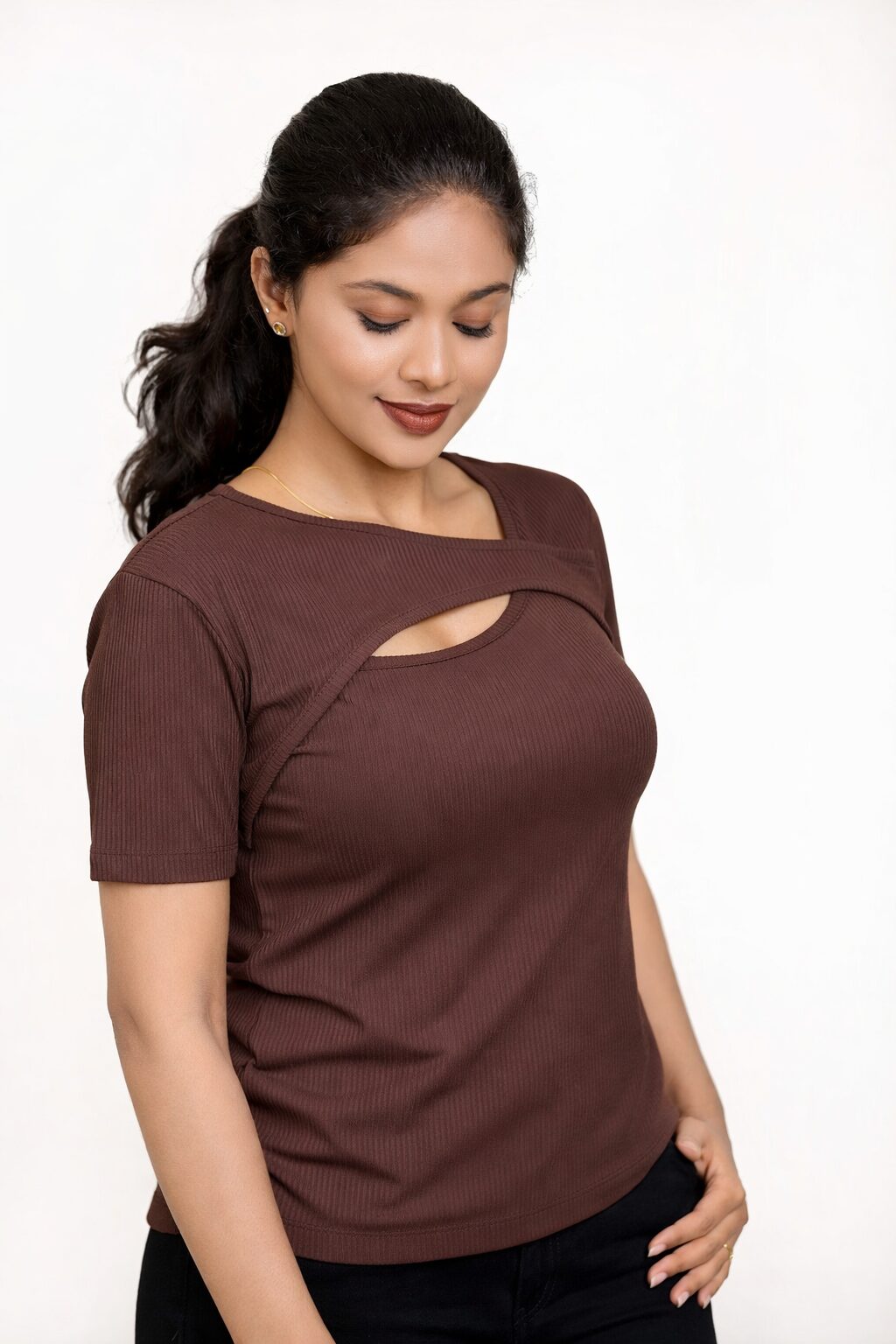 Lycra Derby Curve Asymmetrical Front Eyehole Designer Top