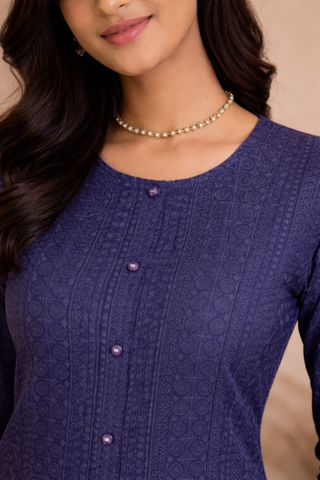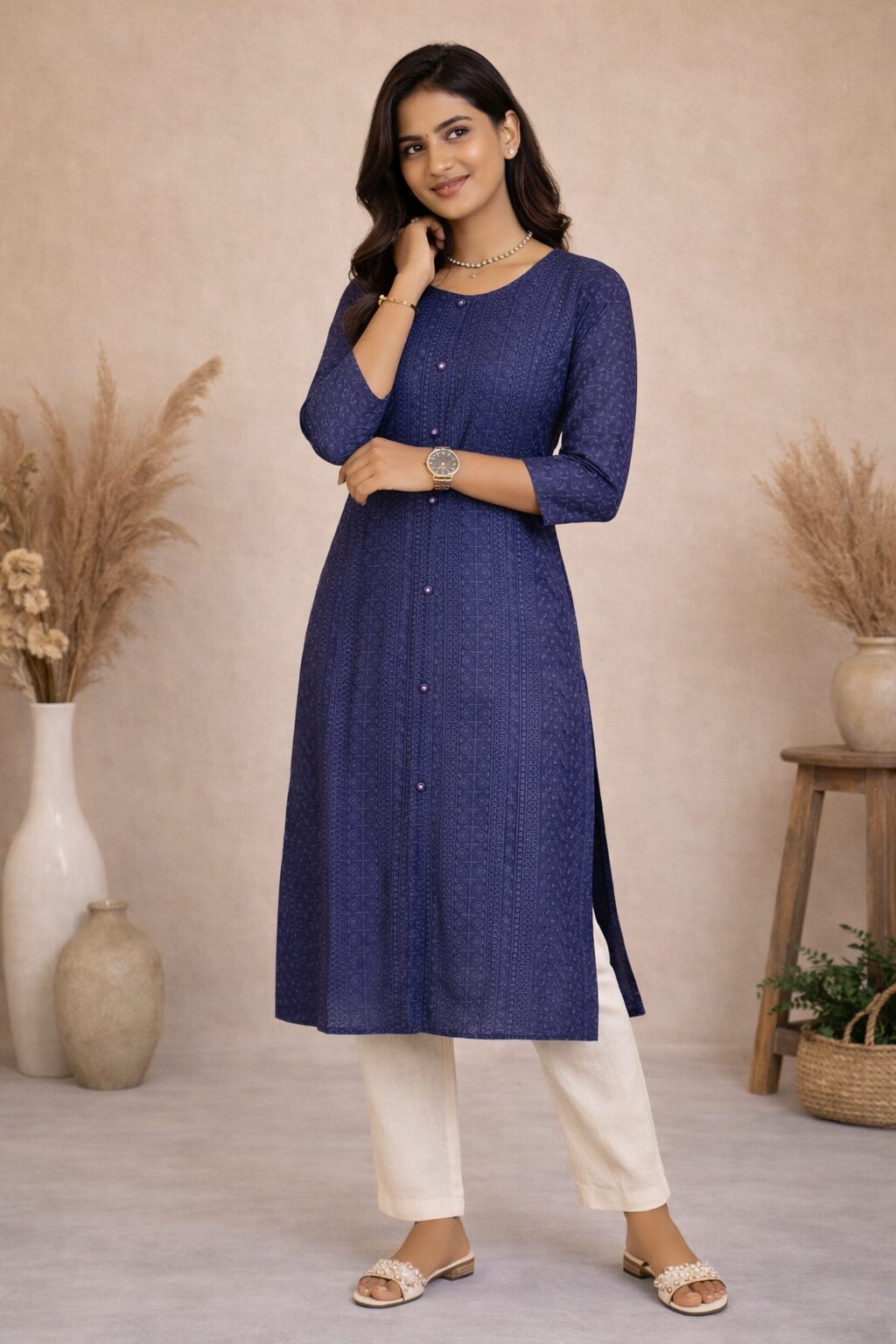Kurti with Front Button Design & Minimal Chikankari Embroidery