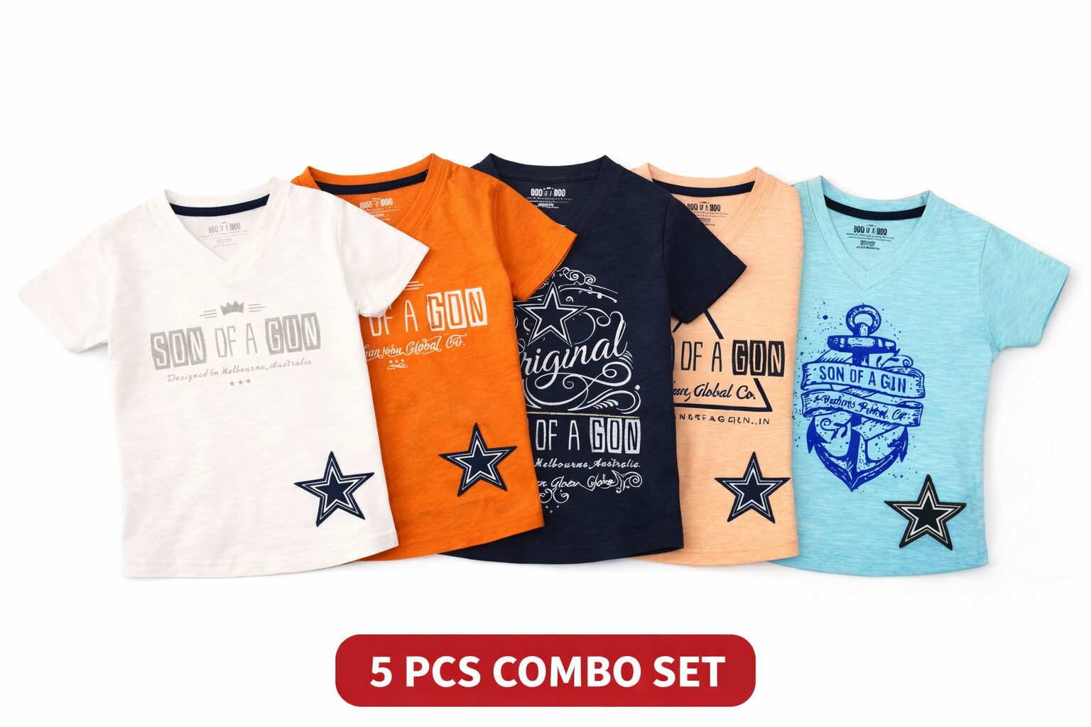 Son of a Gun Kids Cotton T-Shirt – 5 Pcs Combo Set